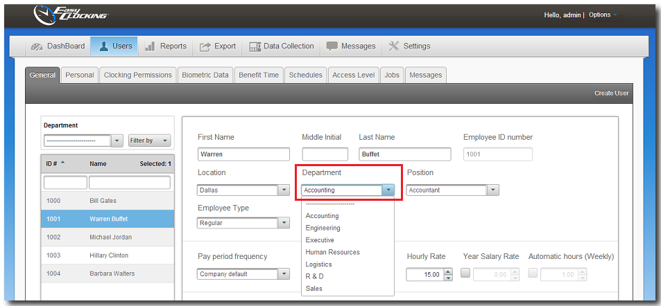 This feature allows adding employees to a department. It's useful when generating reports for employees, as you can sort and filter them out by specific departments.