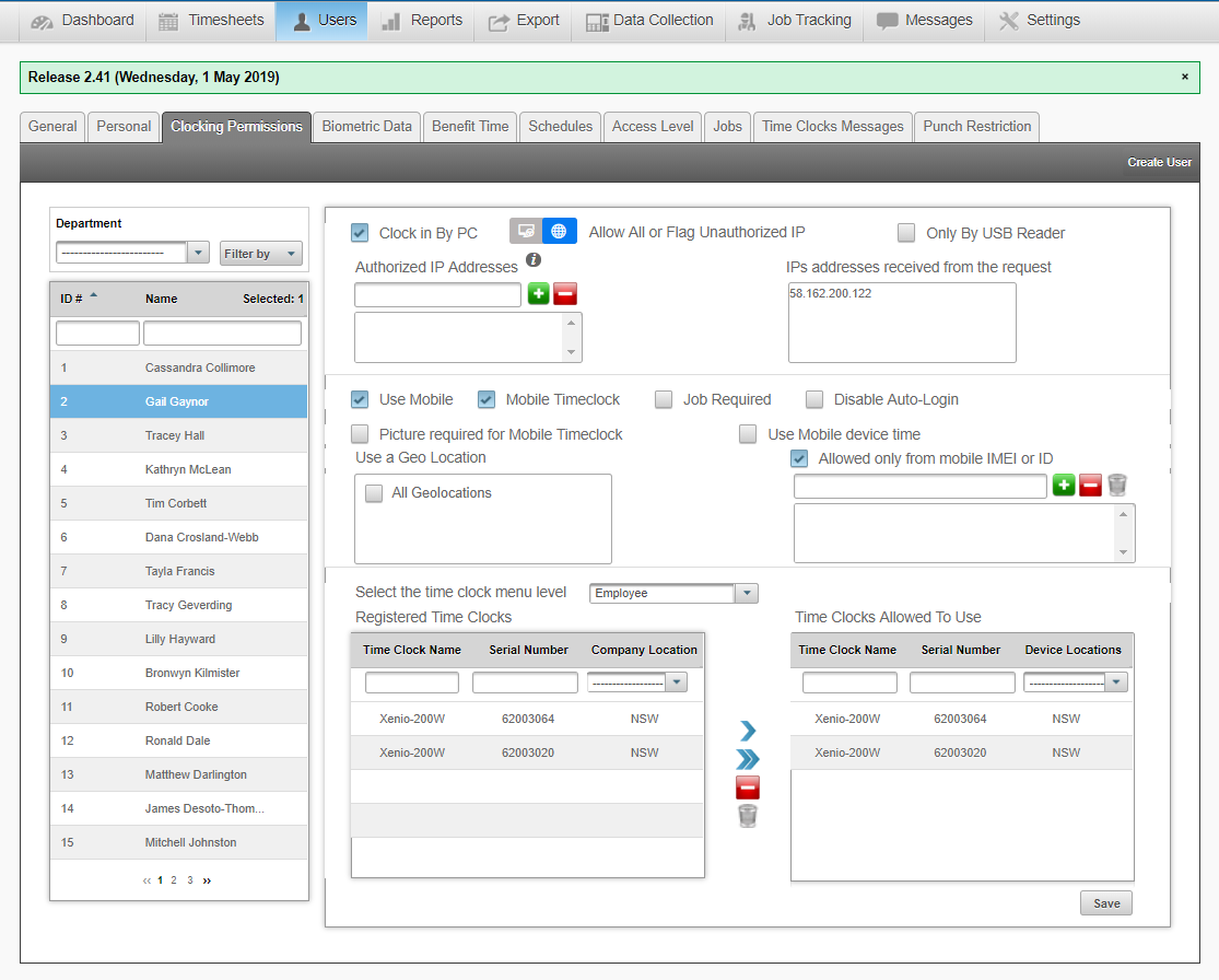 Managers and Administrators can assign the users to specific devices via the Clocking Permissions tab. The Clocking Permissions tab is where you can give the employee access to clock in via a PC, Mobile Application or the Time Clock. To setup ...